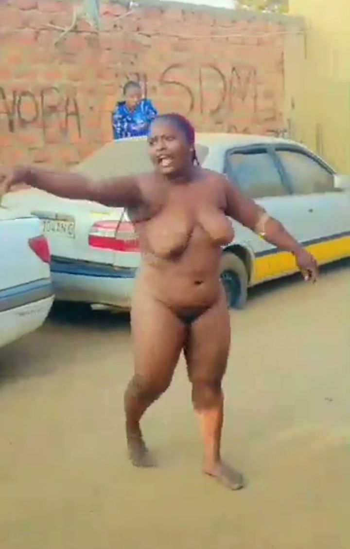 Boobs And Ass Exposed In Public, As Naked African Woman With Big Breasts And Nyash Fights Police In Public